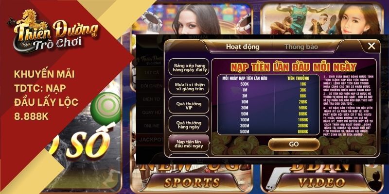 TDTC nổi tiếng với hàng loạt chương trình khuyến mãi đặc biệt dành cho người chơi mới lẫn người chơi kỳ cựu. Từ những phần thưởng hấp dẫn cho người chơi đăng ký tài khoản mới, đến những chương trình tri ân khách hàng. TDTC luôn biết cách khiến người chơi cảm thấy hứng thú và hài lòng.